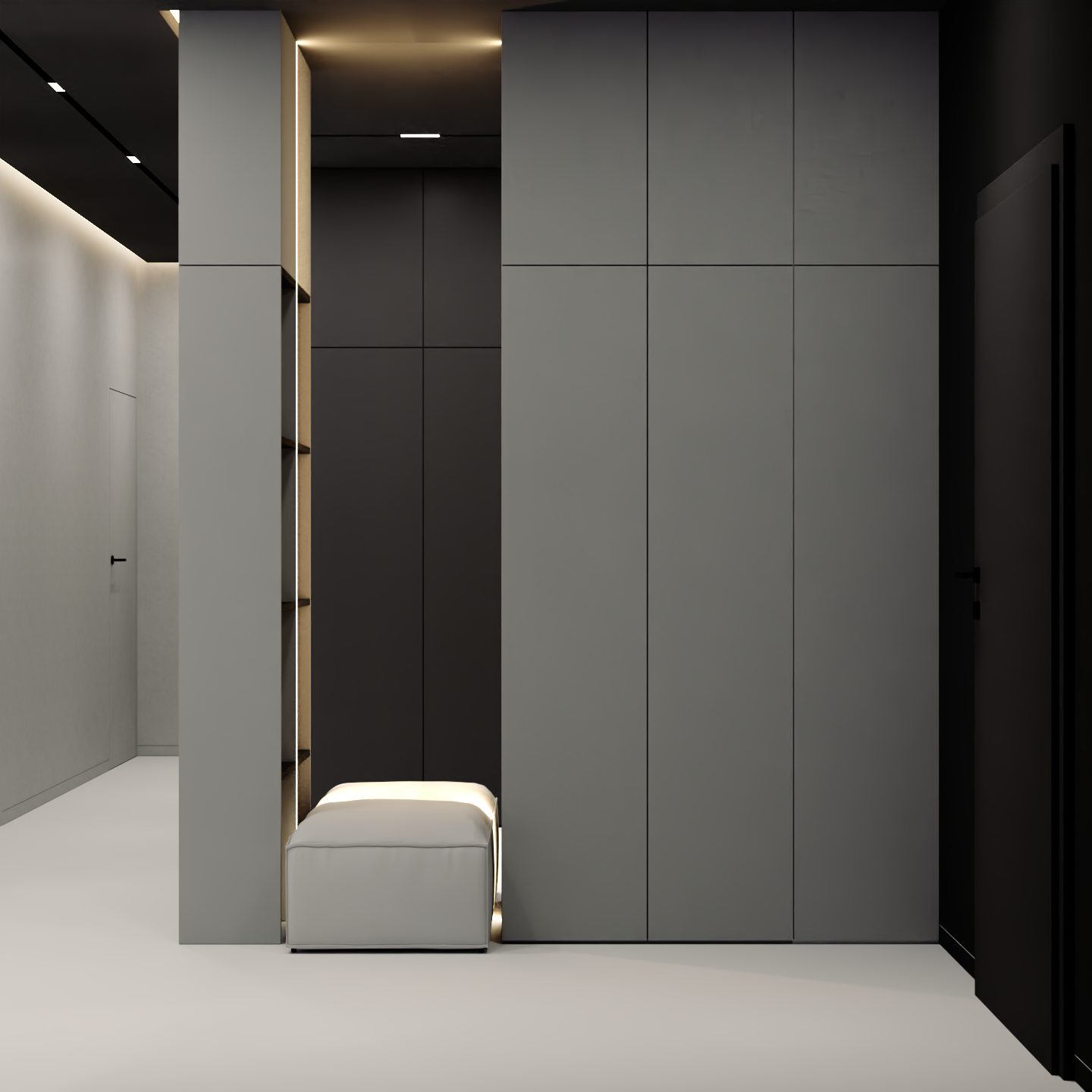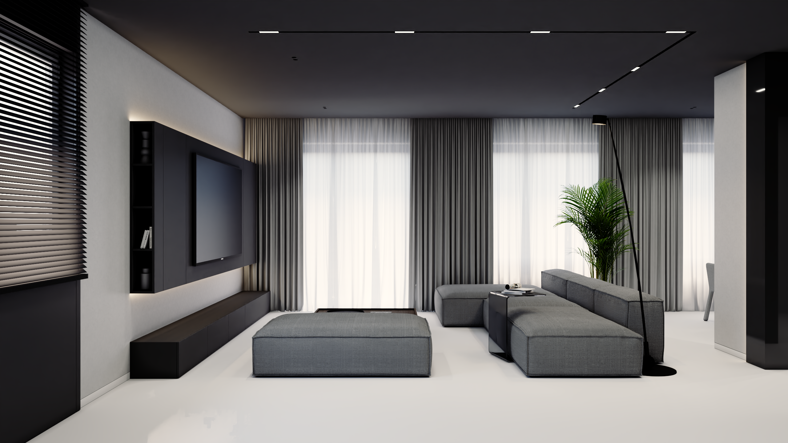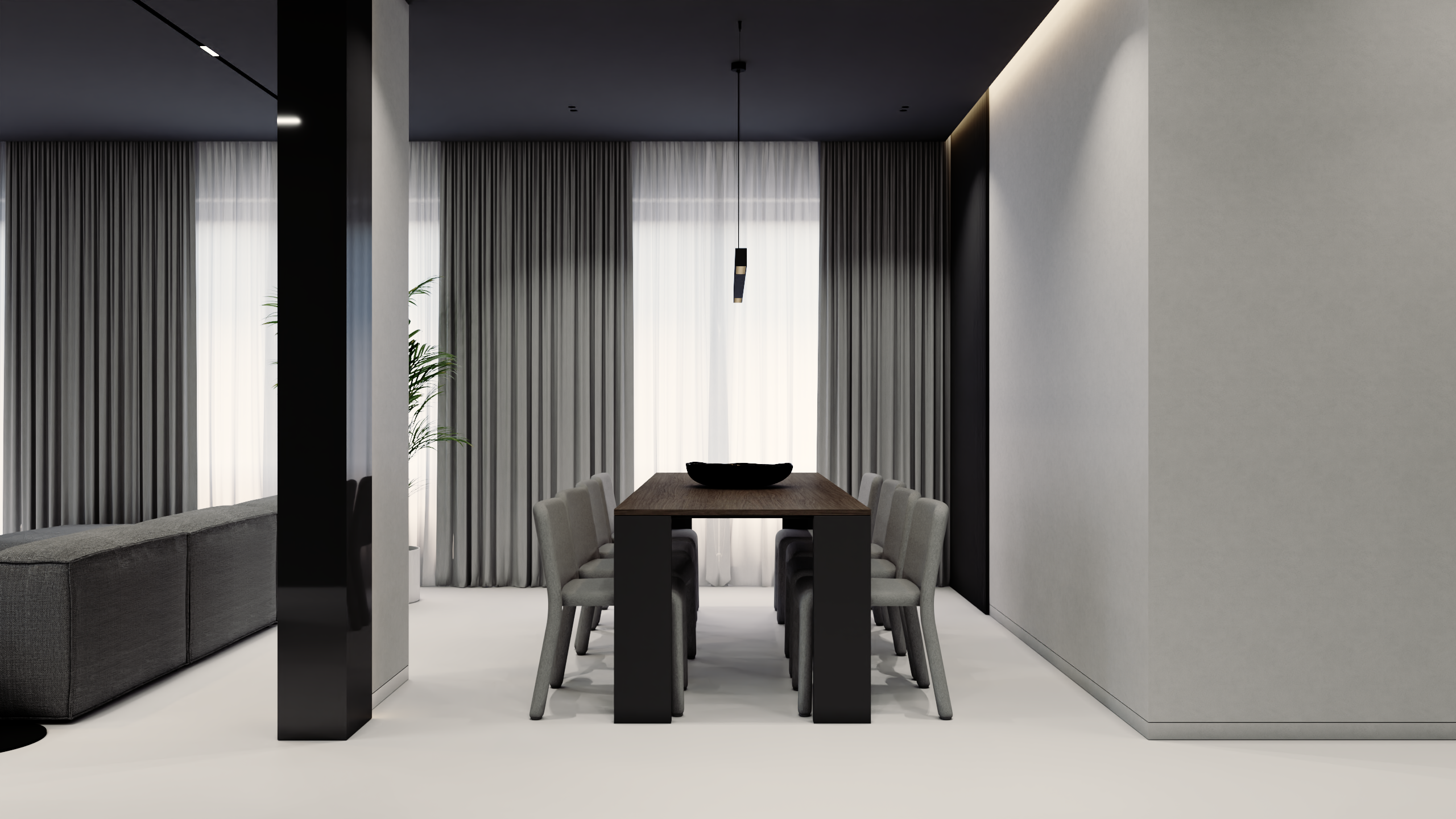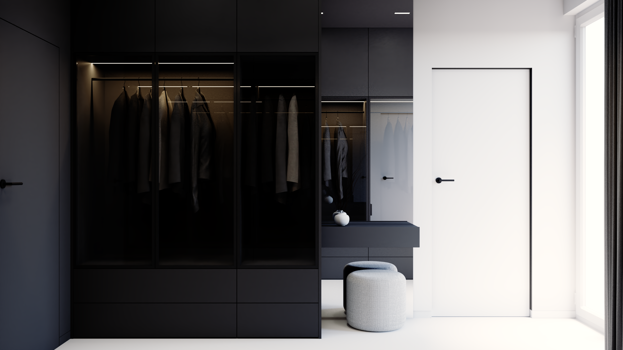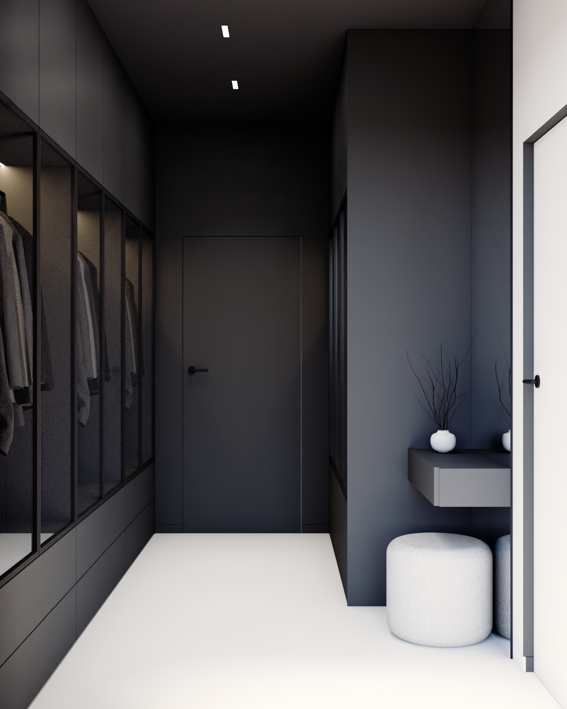 Przedstawiamy koncepcję estetyczną mieszkania w Ożarowie Mazowieckim. Ten unikalny projekt to kwintesencja luksusu i nowoczesnego podejścia do projektowania wnętrz premium, stworzona z myślą o najbardziej wymagających inwestorach. Przestrzeń została skomponowana tak, aby łączyć wyrafinowaną elegancję z najwyższą funkcjonalnością, opierając się na szlachetnych materiałach i ponadczasowej, odważnej palecie barw, w której dominują głębokie czernie, grafity oraz czyste biele.