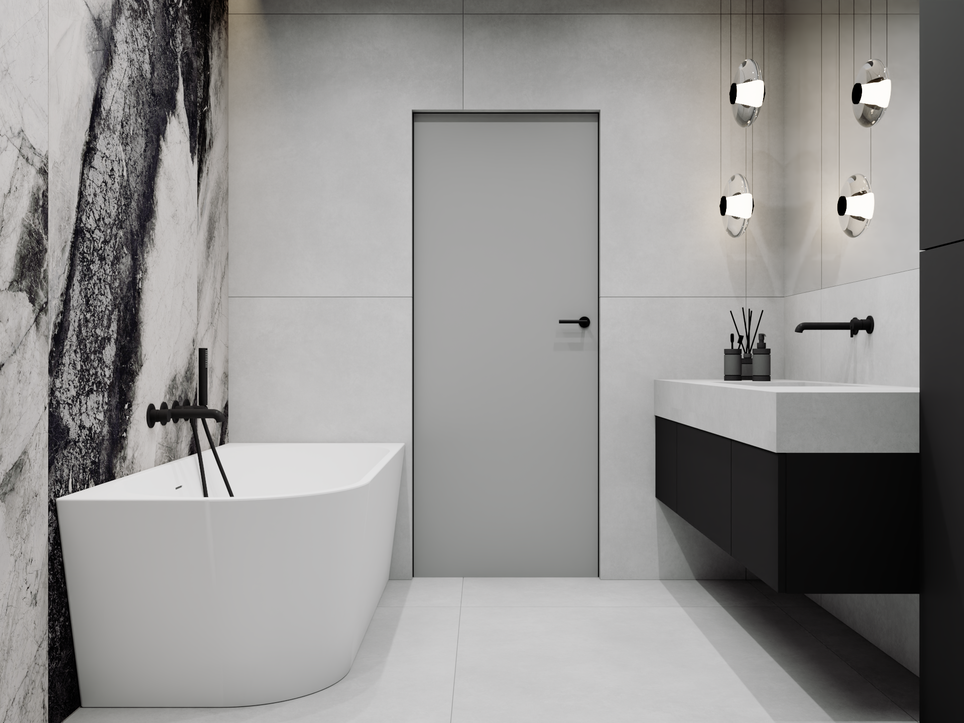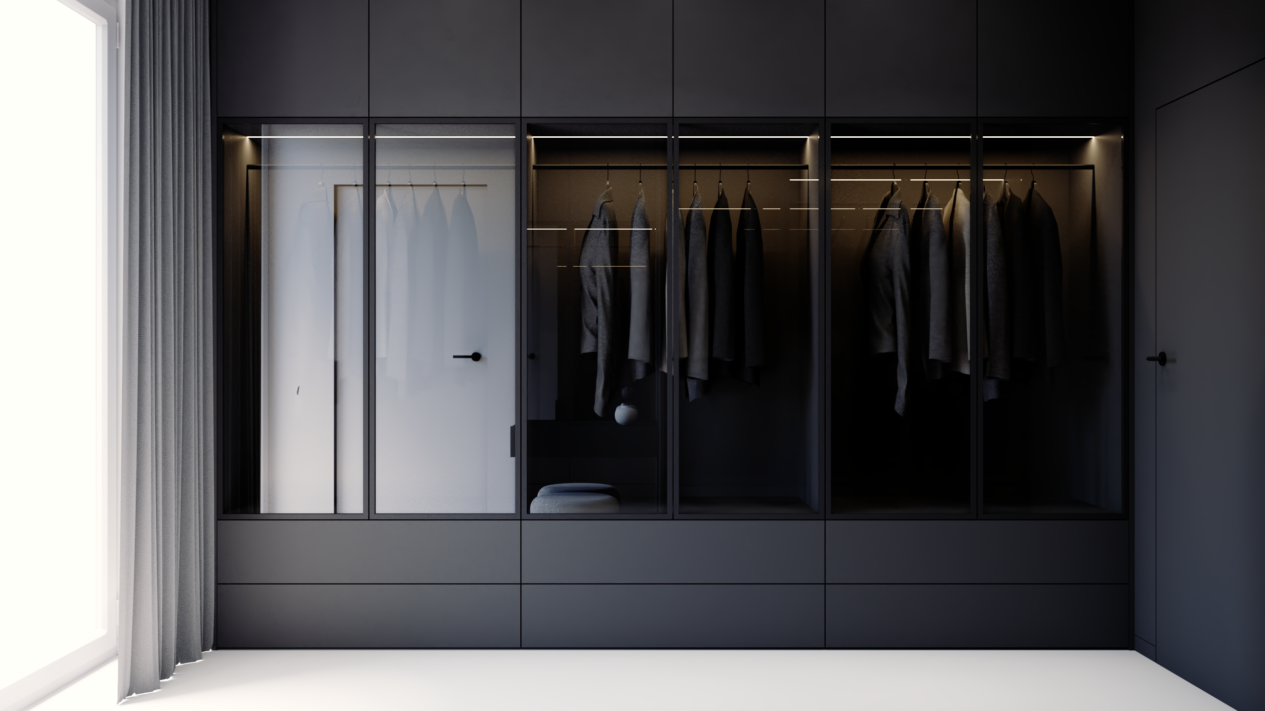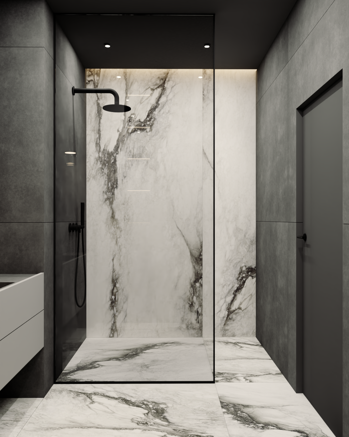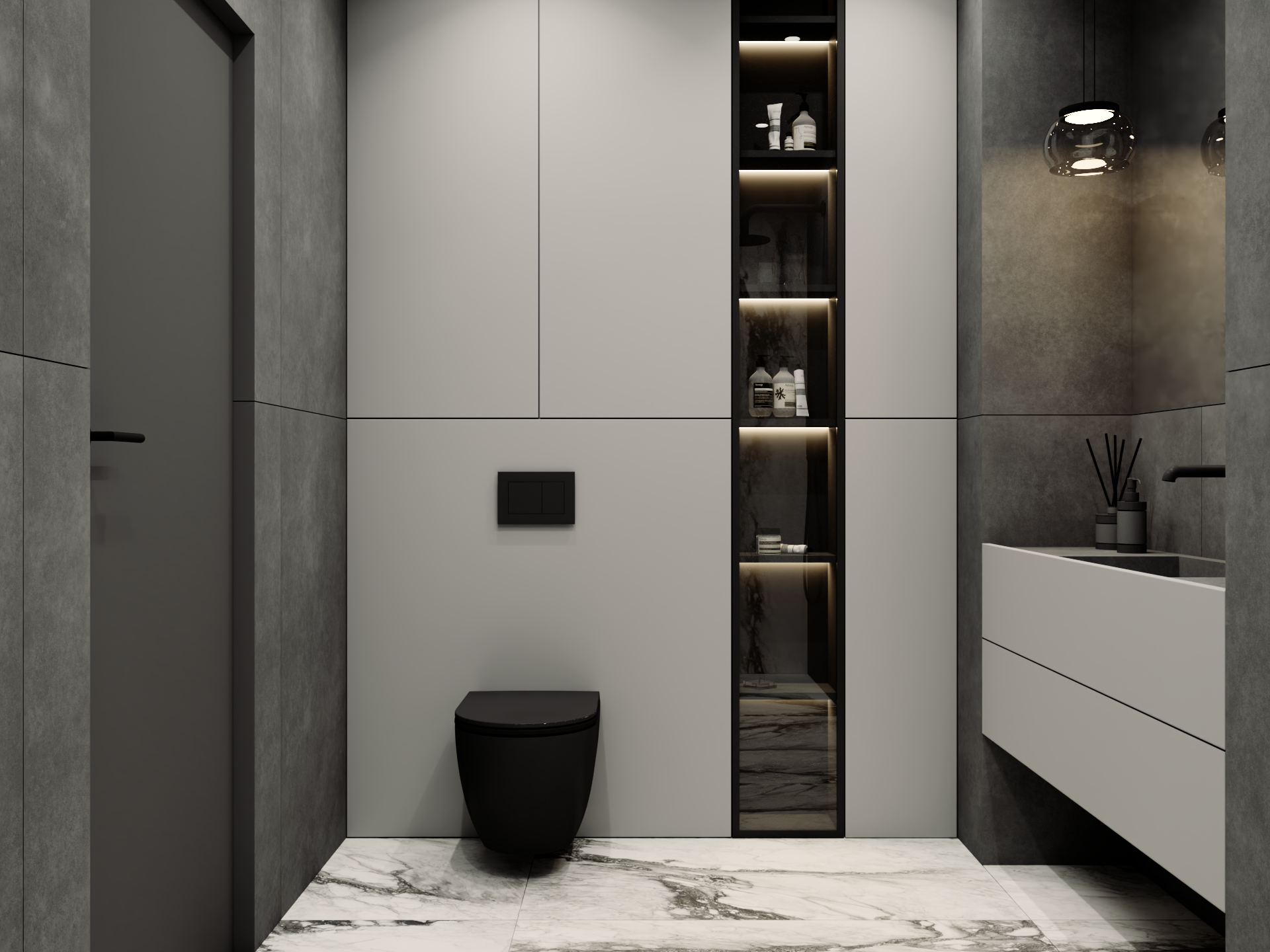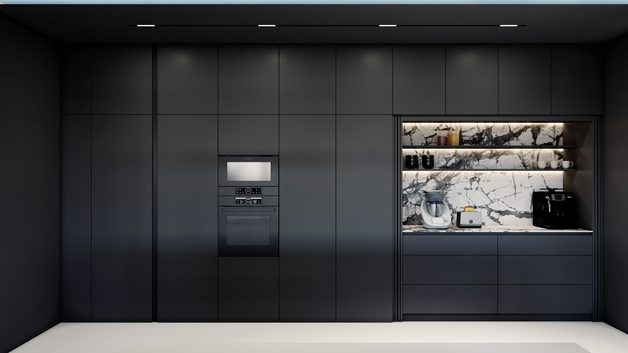 Przedstawiamy koncepcję estetyczną mieszkania w Ożarowie Mazowieckim. Ten unikalny projekt to kwintesencja luksusu i nowoczesnego podejścia do projektowania wnętrz premium, stworzona z myślą o najbardziej wymagających inwestorach. Przestrzeń została skomponowana tak, aby łączyć wyrafinowaną elegancję z najwyższą funkcjonalnością, opierając się na szlachetnych materiałach i ponadczasowej, odważnej palecie barw, w której dominują głębokie czernie, grafity oraz czyste biele.