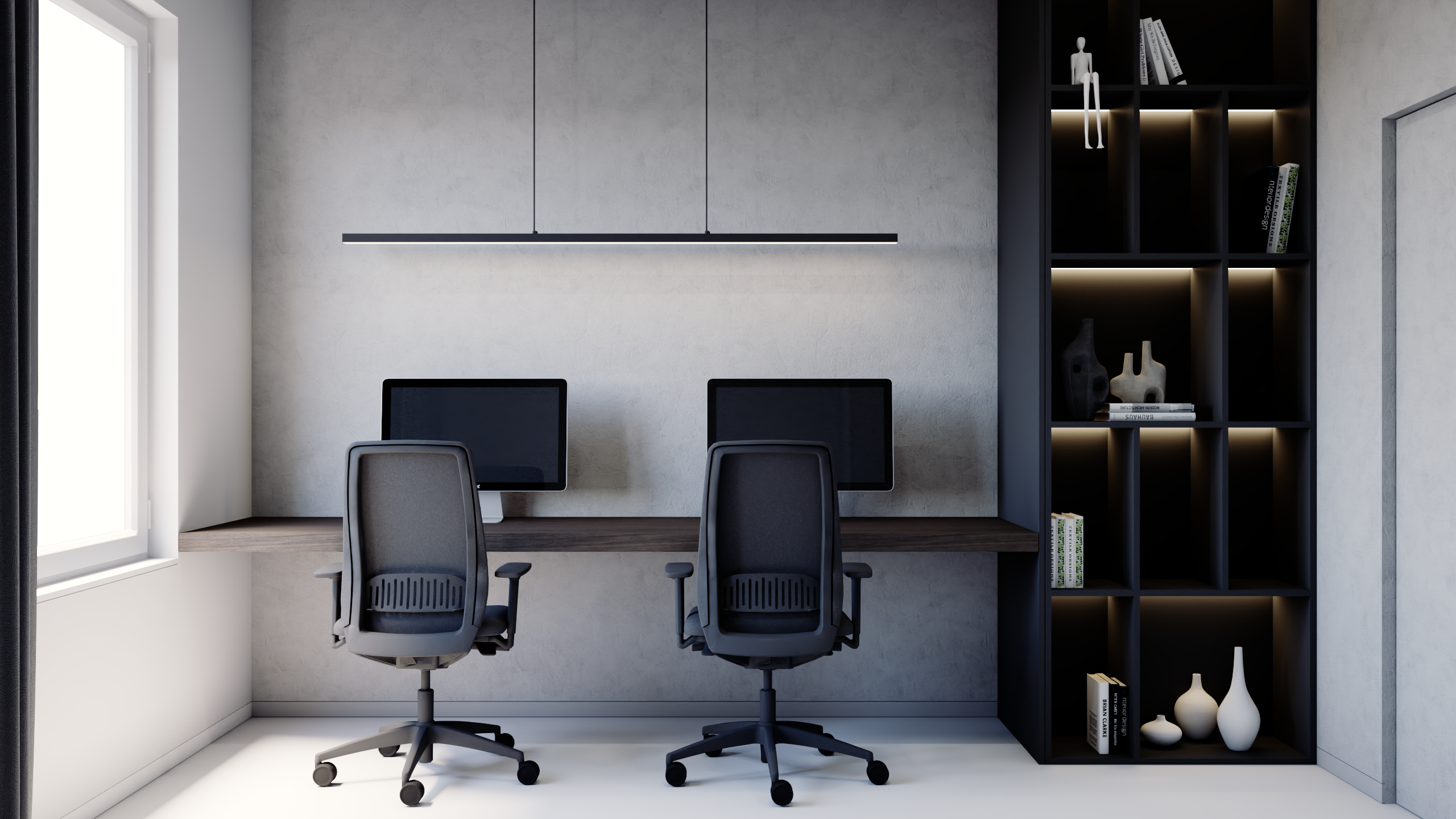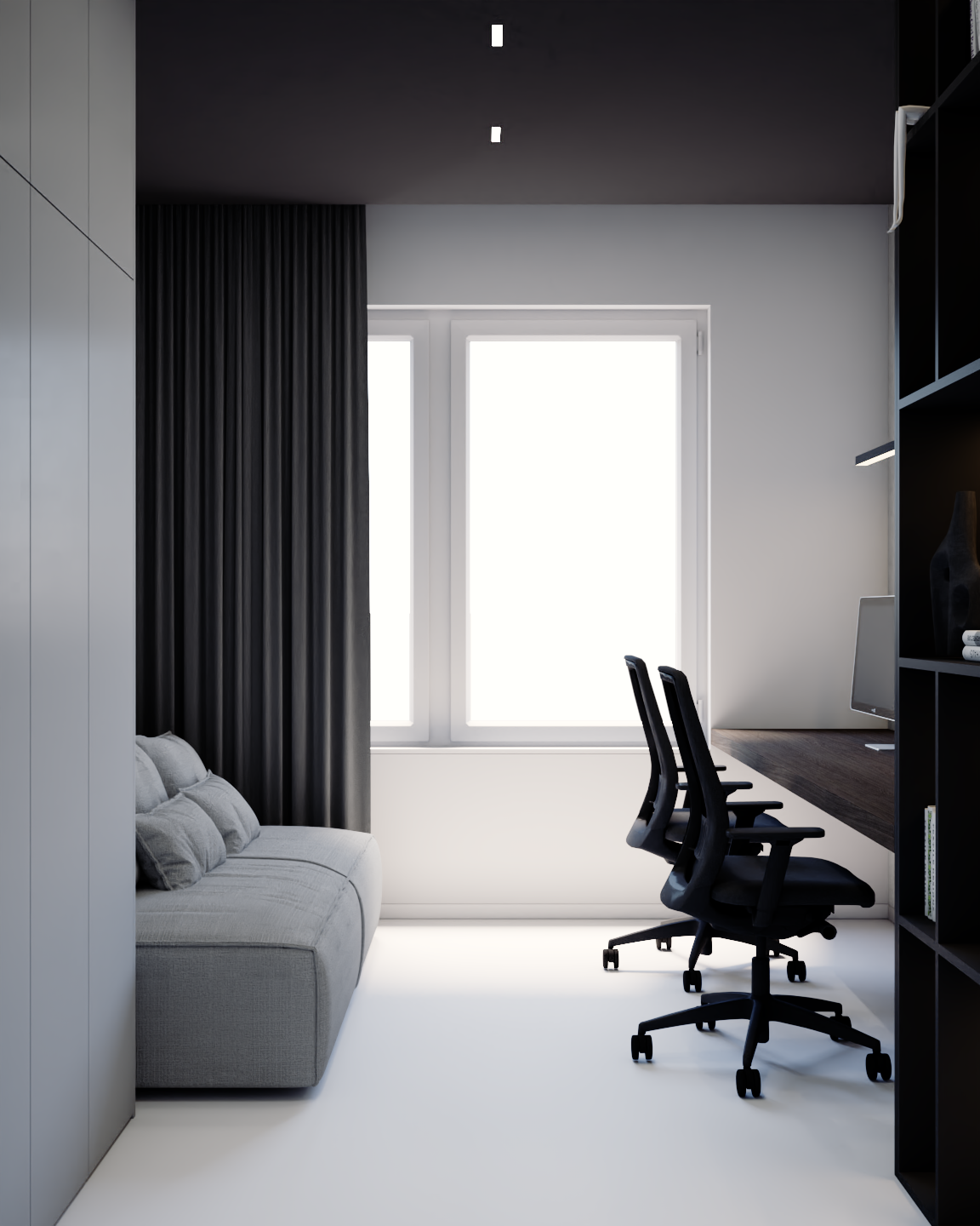 Dla osób ceniących możliwość pracy z domu przygotowano nowoczesny gabinet, który łączy ergonomię z wyrafinowaną, minimalistyczną estetyką, gwarantując maksymalne skupienie i komfort w stylowym otoczeniu.