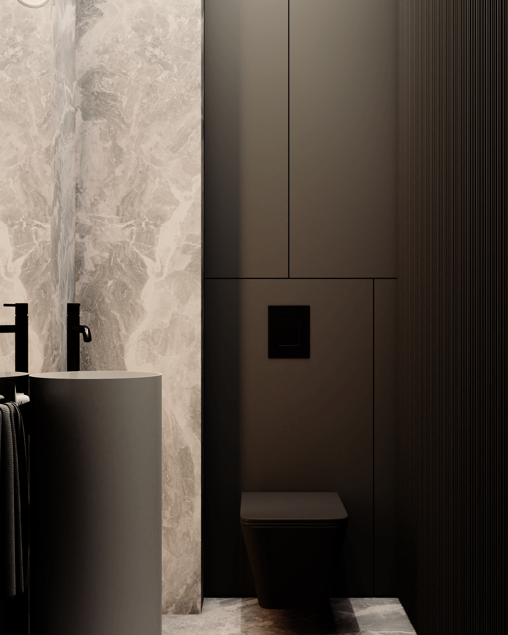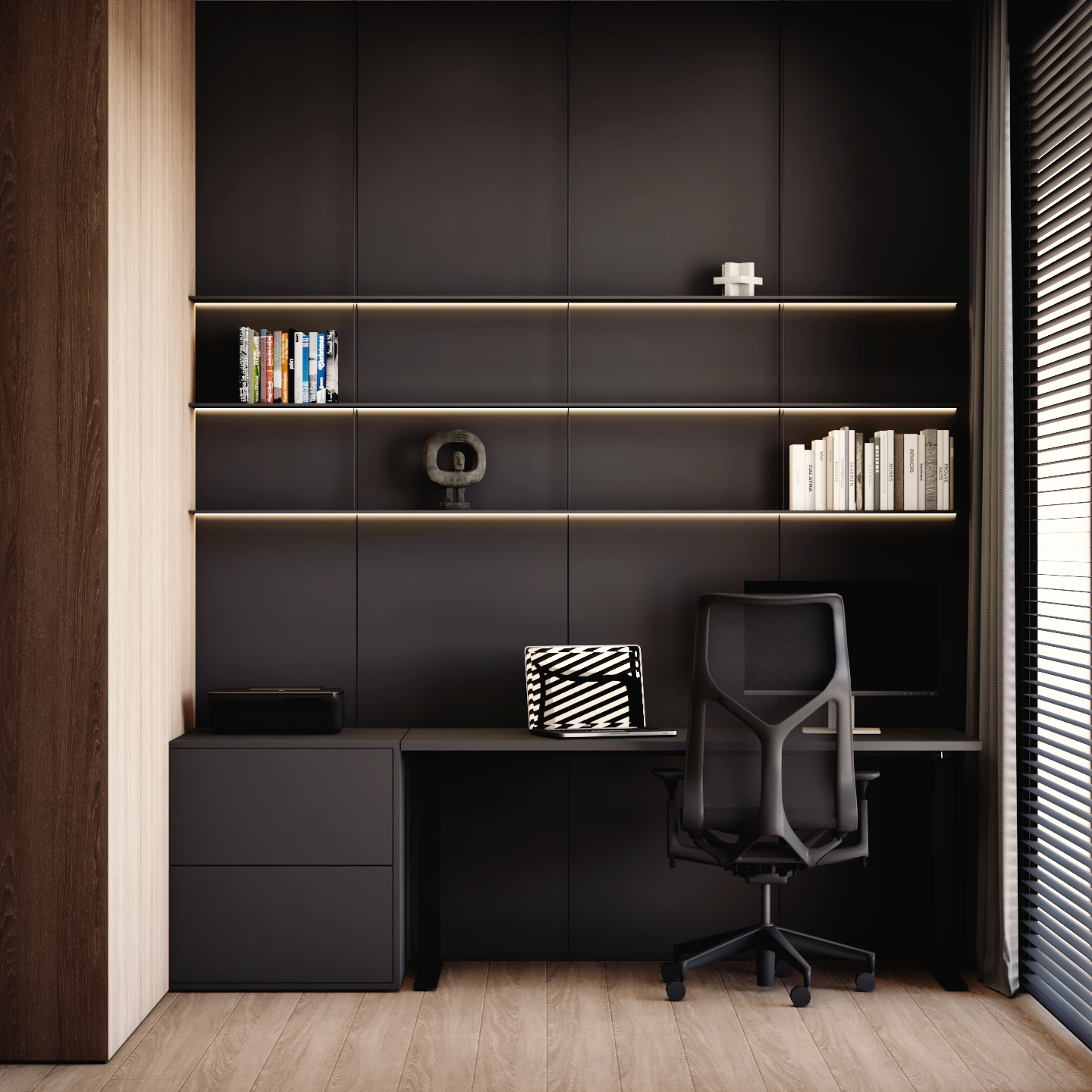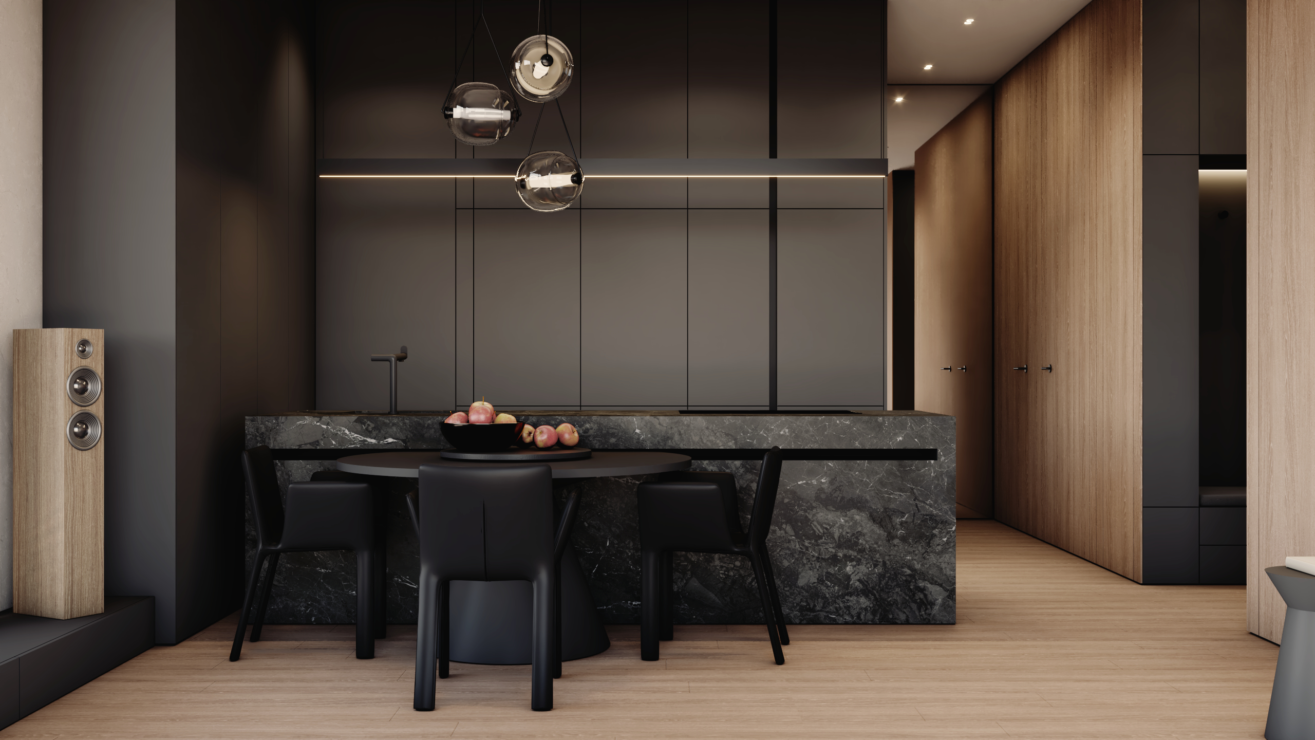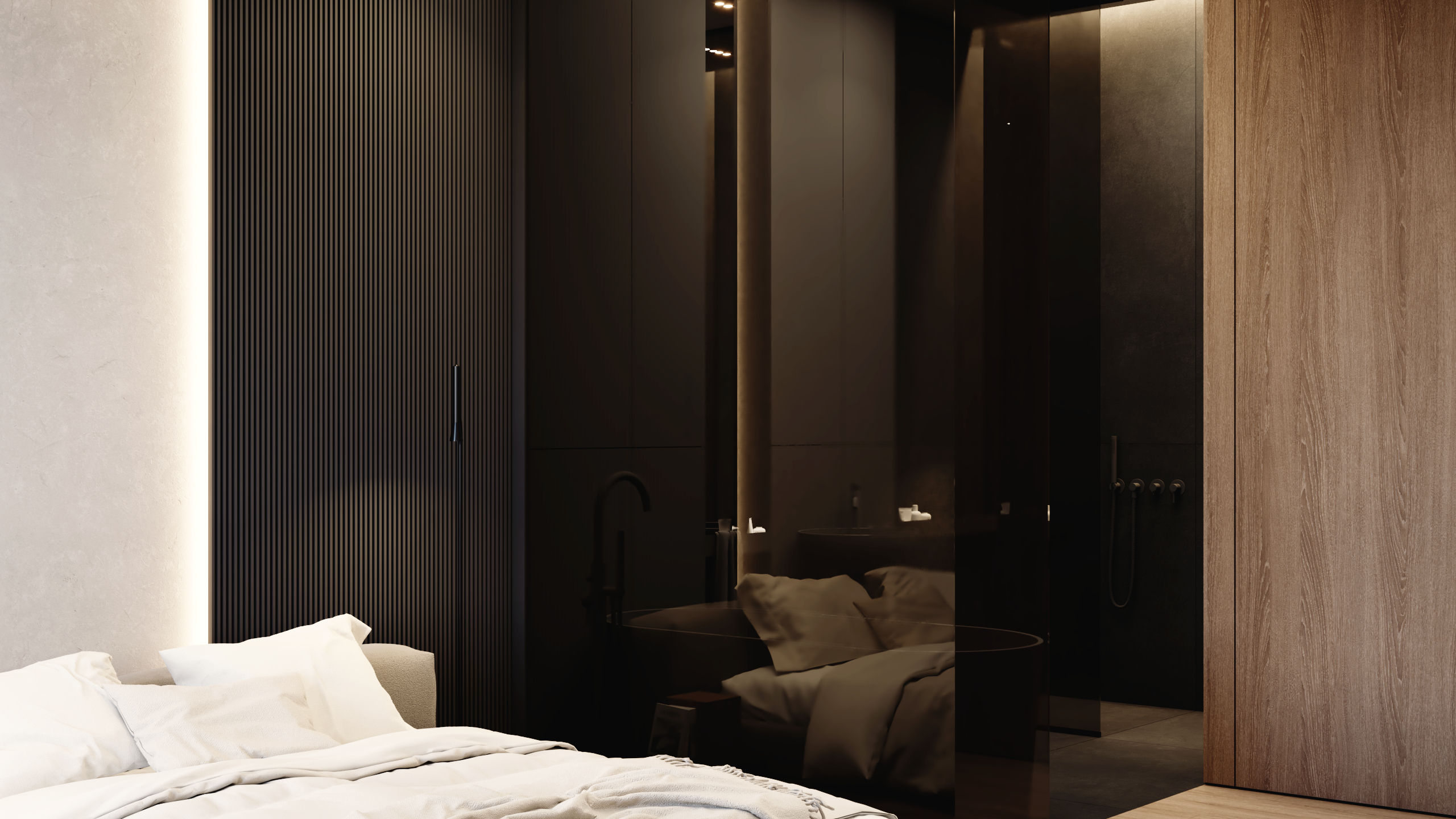 Ta realizacja to dowód na to, że architektura wnętrz premium opiera się na spójności wizualnej i bezkompromisowej dbałości o detale.